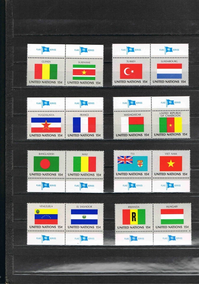 16 UN Flag Tab Trailer Mi. No. 348 - 363 MNH, Excellent Condition! X