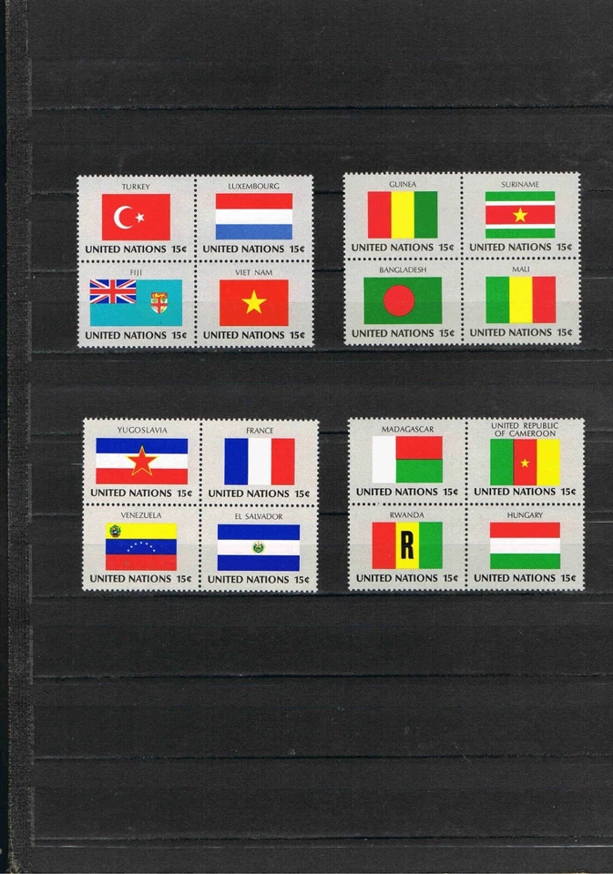 4 UNO Block of 4 Mi. No. 348 - 363 "Flags Centerpieces" MNH, Excellent!!!