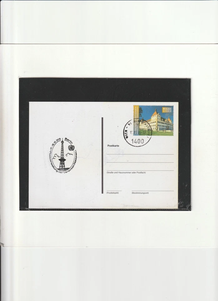 UN Vienna document with Michel No. 396 exhibition special postmark "Berlin 18.10.15" XX3