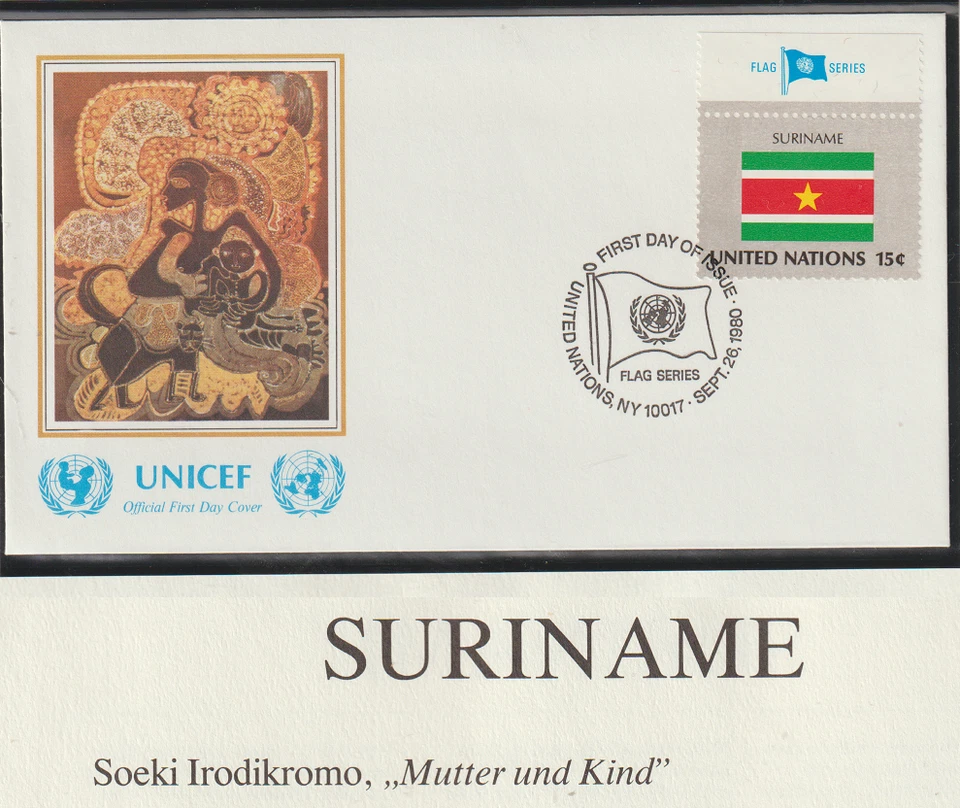 United Nations Flags FDC First Day Cover 1980 Suriname