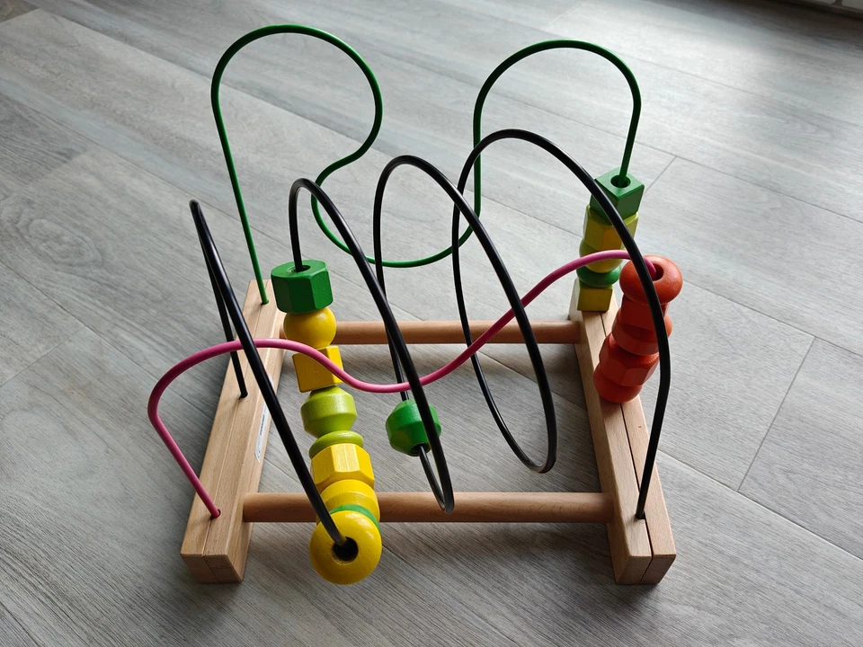 IKEA MULA Motorikschleife aus Holz Holzperlen Motorikspielzeug bunt