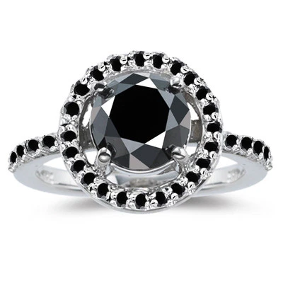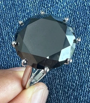 5 kt schwarzer Rundschliff Solitär Moissanit Verlobungsring Sterlingsilber Größe 9