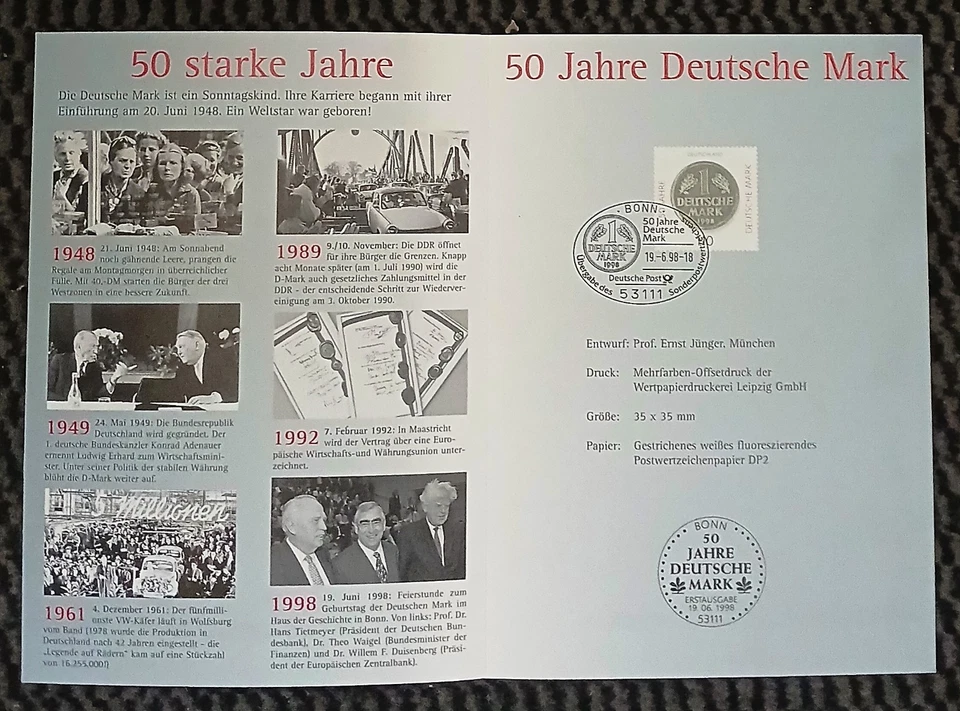 50 Jahre Deutsche Mark - Jahreskarte des Sammler-Sevice 1998