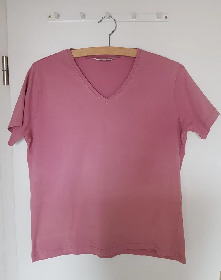 Damen T-Shirt Gr. L rosa kurzarm V-Ausschnitt