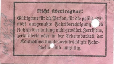 Alter BVG Fahrschein, abgelocht, so ca. 1936 bis 1945,Teilstreckenfahrschein