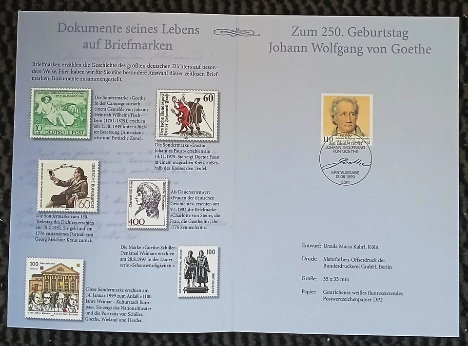 250. Geburtstag Johann Wolfgang von Goethe - Jahreskarte des Sammler-Sevice 1999