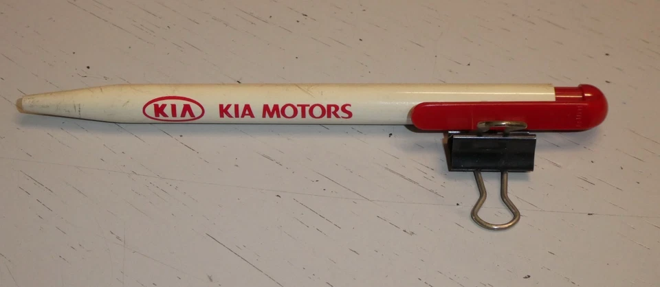 KIA MOTORS_Werbe-Kugelschreiber_weiß mit roter Beschriftung_Schreibfarbe blau