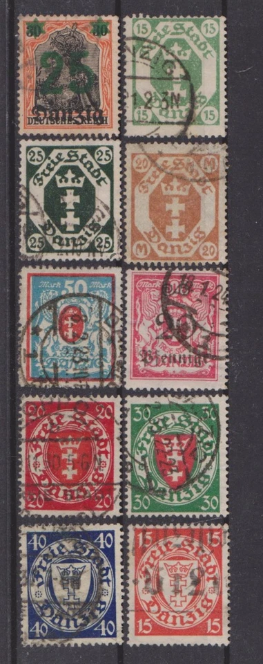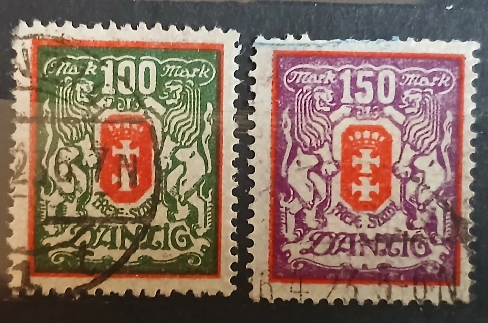 2 Briefmarken Freie Stadt Danzig, 100 und 150 Mark, gestempelt
