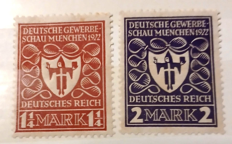 2 Briefmarken Deutsches Reich - Deutsche Gewerbeschau München 1922 - postfrisch