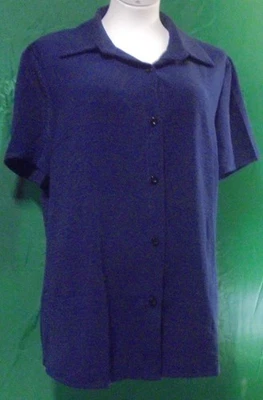 Damen Bluse lang blau kurze Ärmel Gr. XL/42/44 (UK 14) gecrincht