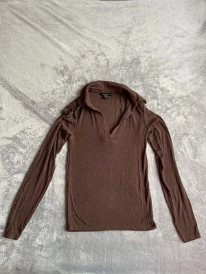 Langarmshirt Oberteil mit Kragen Damen braun Amisu Gr. S
