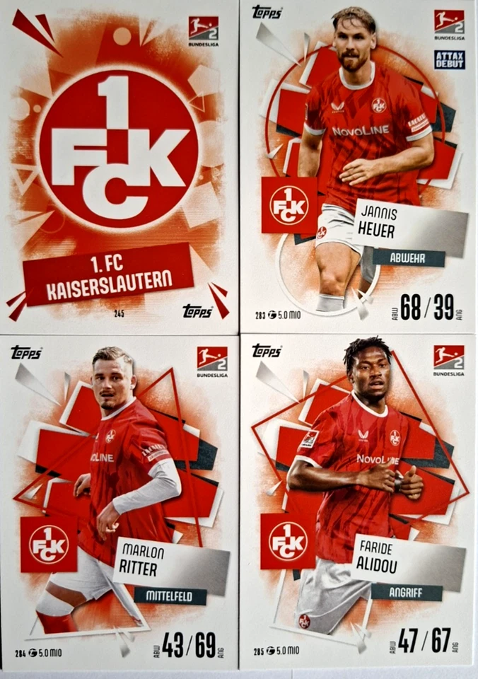 Match Attax Bundesliga 25/26 Vier Karten vom 1.FC Kaiserslautern incl. Wappen