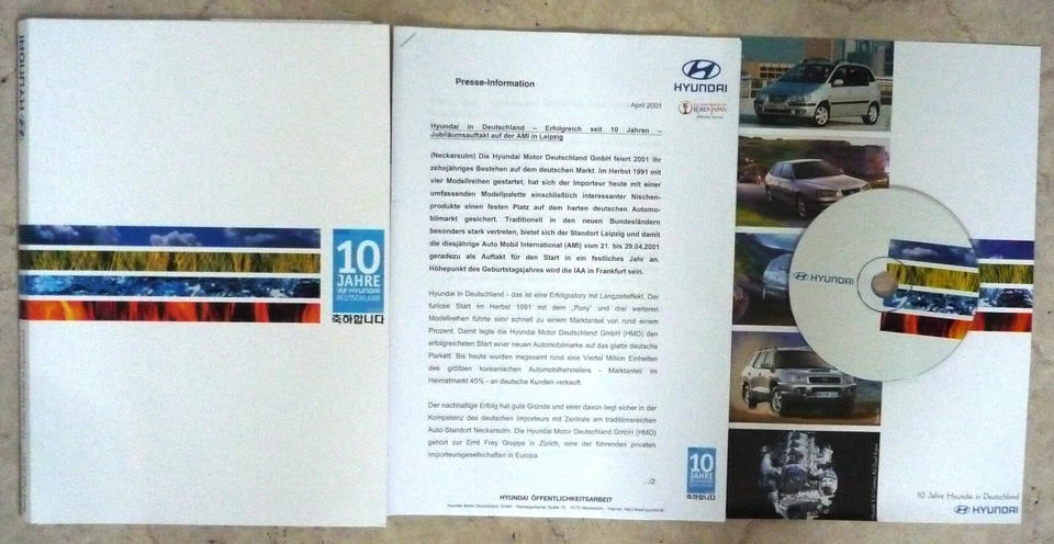 Pressemappe 10 Jahre Hyunday in Deutschland - AMI Leipzig 04/2001