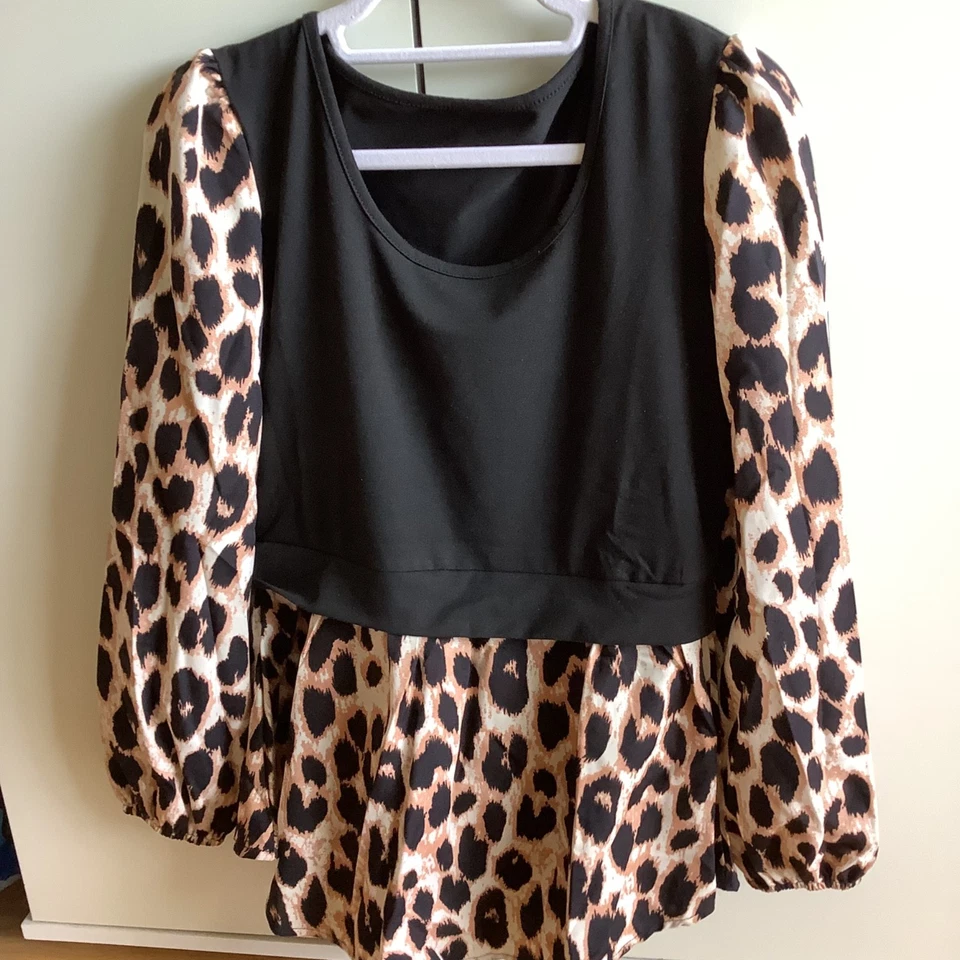 Damen LangarmShirt im Lagenlook schwarz mit leomuster Gr S neu