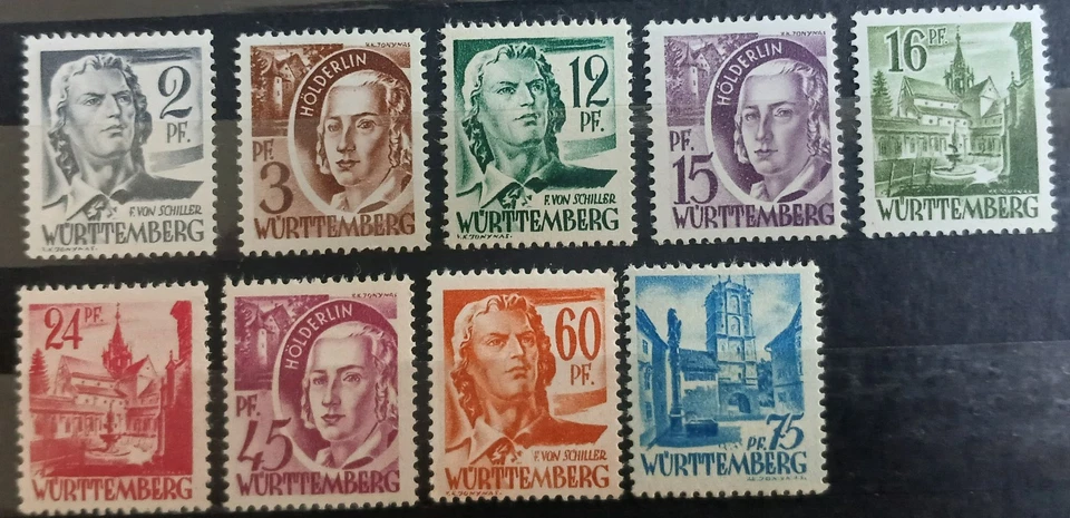 9 Briefmarken Württemberg - postfrisch