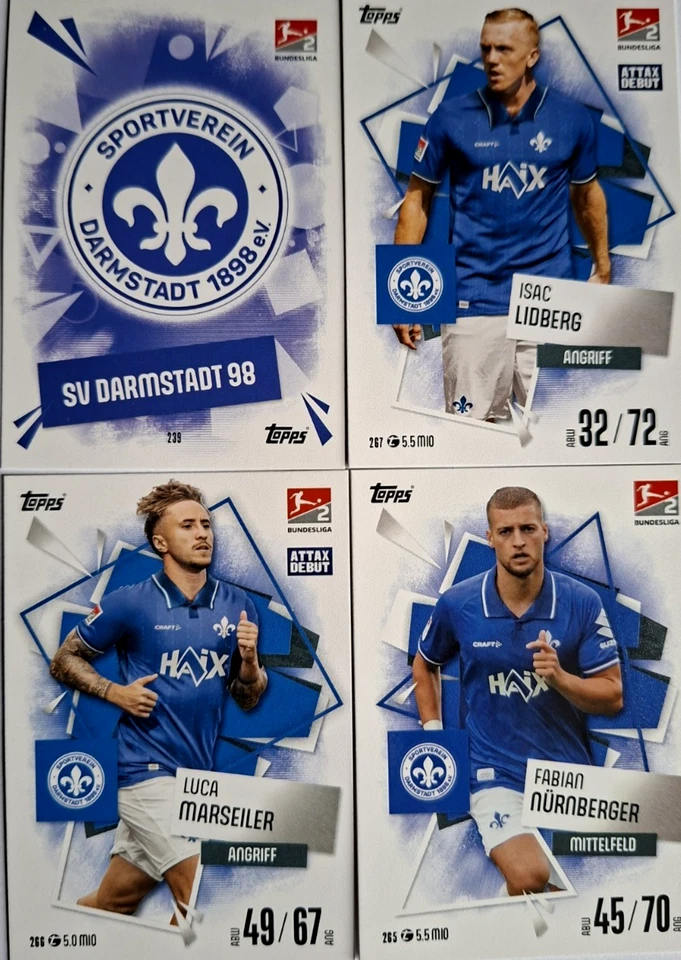 Match Attax Bundesliga 25/26 Vier Karten von SV Darmstadt 98 incl. Wappen