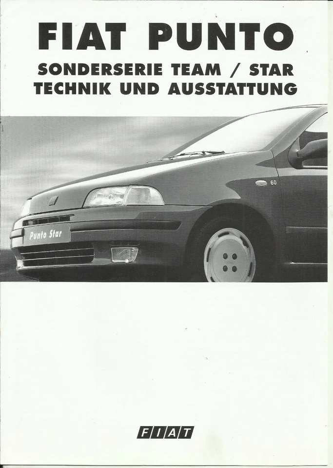 Prospekt Fiat Punto Team / Star Sondermodell 1997 Technische Daten Ausstaung