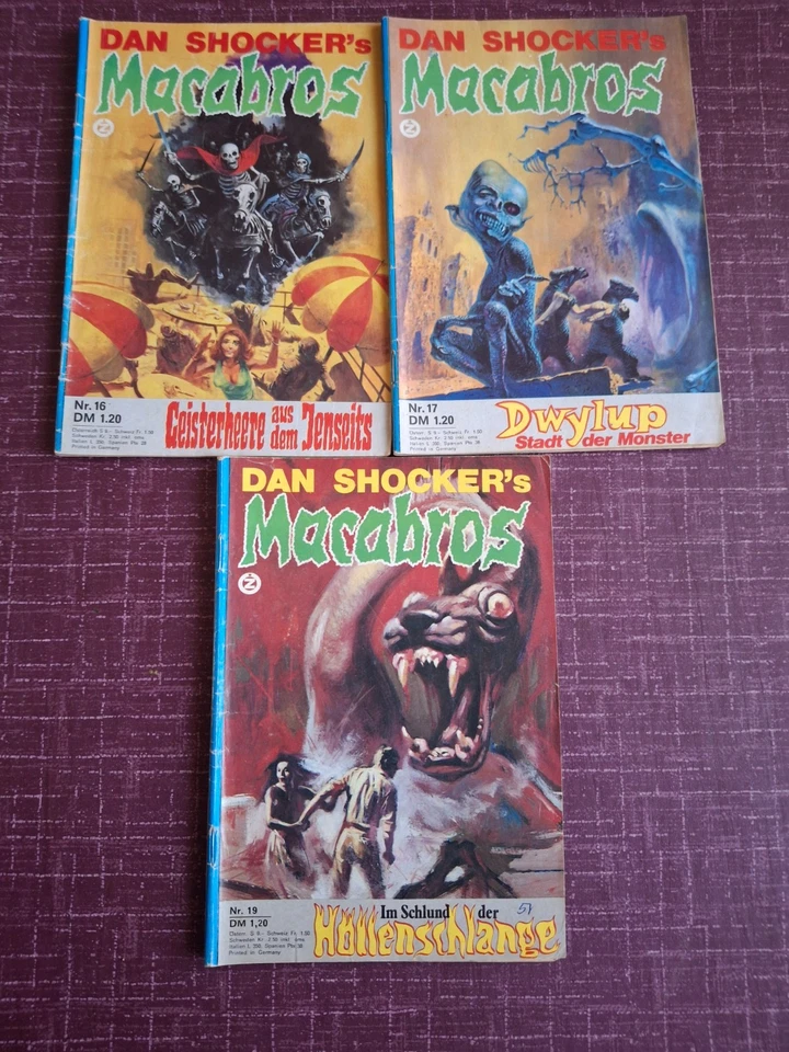 3 x DAN SHOCKER's MACABROS Nr. 16 + 17 + 19 Zauberkreis-Verlag, Rastatt