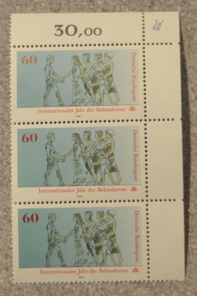 Briefmarken Bund 1981, Nr. 1083, Jahr Behinderte, 60 Pf. 3er Block