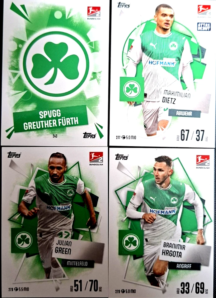 Match Attax Bundesliga 25/26 Vier Karten von Greuther Fürth incl. Wappen