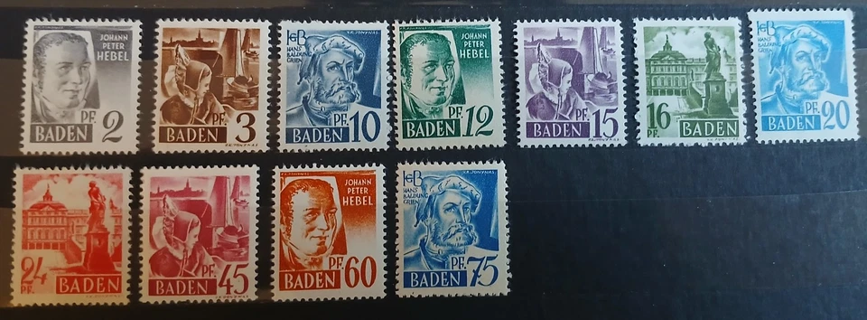 11 Briefmarken Baden, postfrisch
