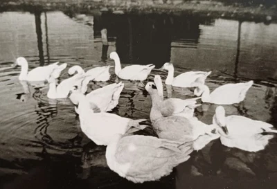 Enten Gänse auf dem Gutsteich Gutshof Kamin Gutshaus Teich Park Ostpreußen Foto
