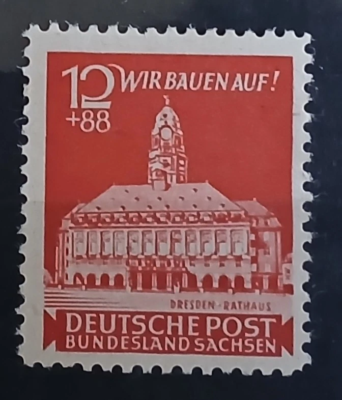 Briefmarke Deutsche Post Bundesland Sachsen - Wir bauen auf - Dresden Rathaus