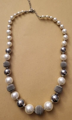 Halskette, weiß, silber, Perlen