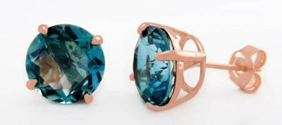 LAB CREATED 9,86 kt BLAUER ZIRKON OHRSTECKER 0,925 SILBER (ROSETON) NEU MIT ETIKETT