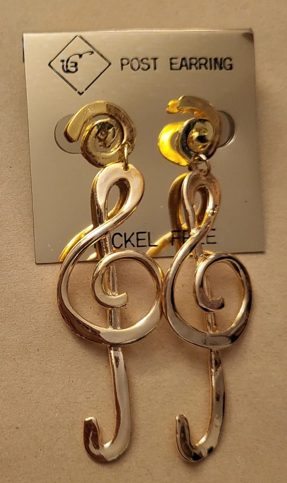 Ohrclips, goldene Notenschlüssel, nickelfrei