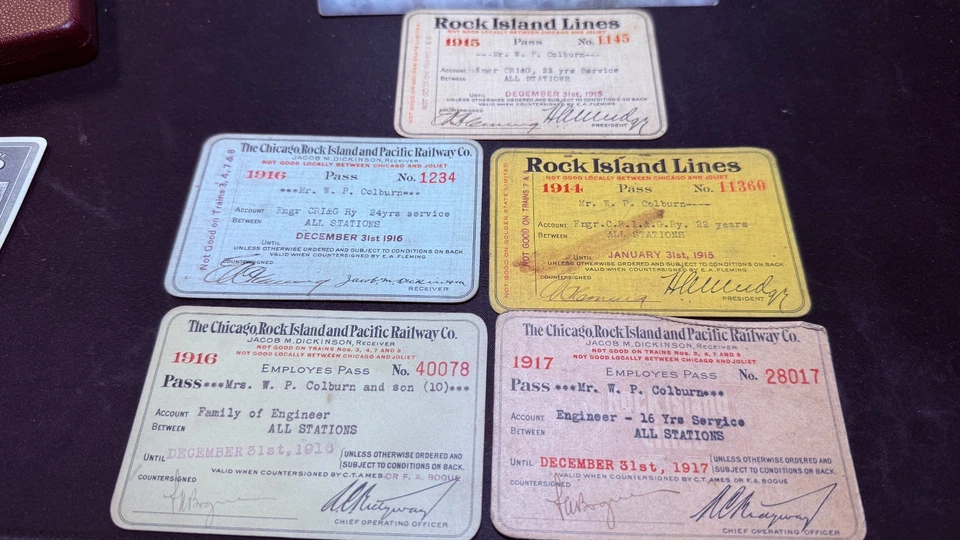 1915-1917 Rock Island Lines Engineer & Family Pass Lot of 5 W P Colburn