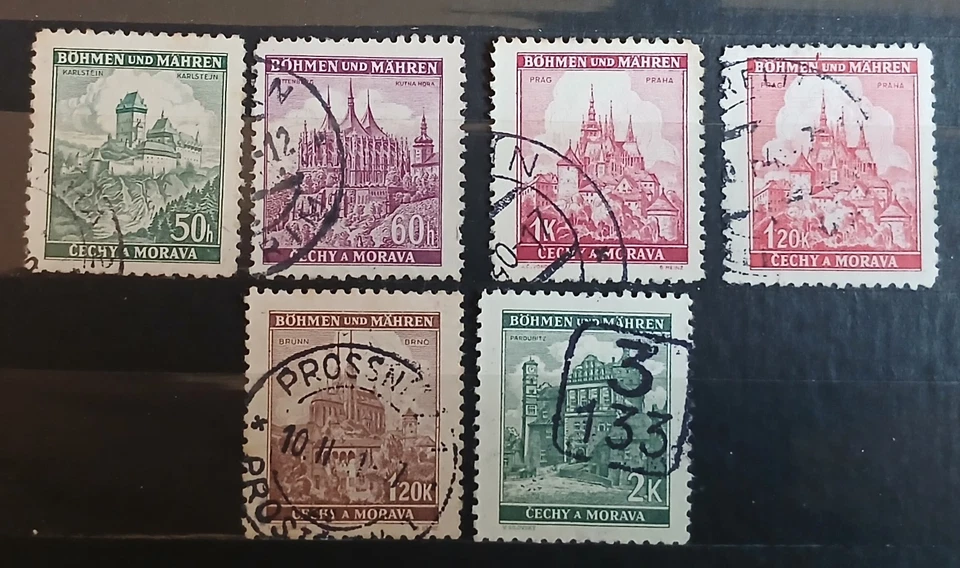 6 Briefmarken Böhmen und Mähren, gestempelt