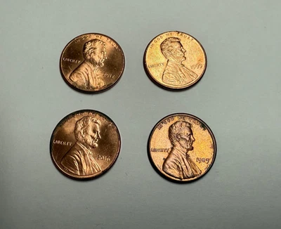 4 Münzen USA One Cent 1989 1999 2012 2016 USA