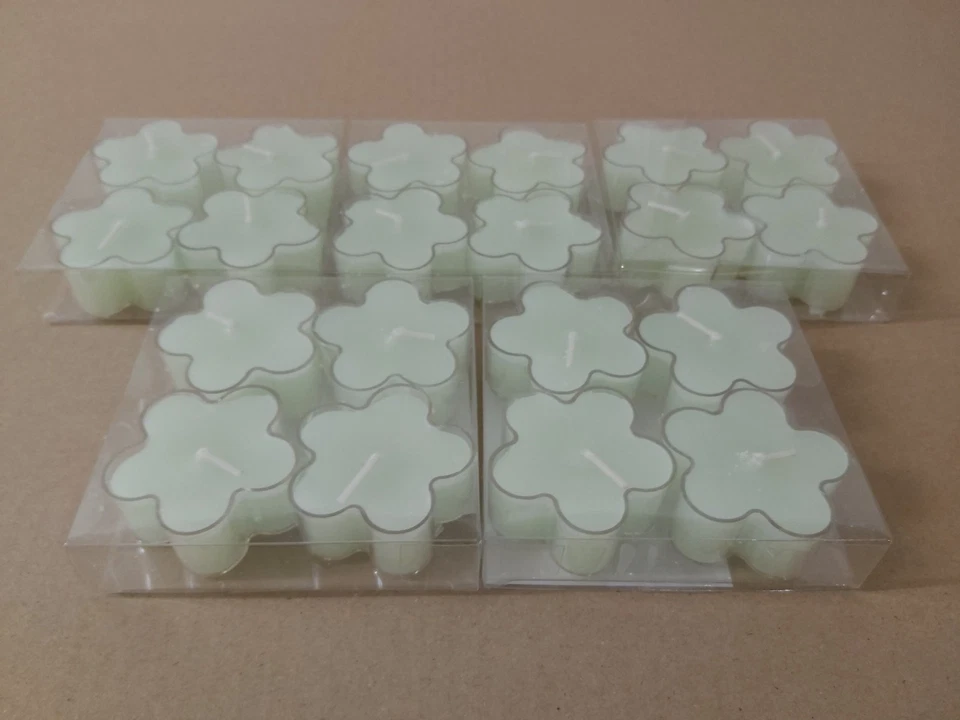 20 Blüten Teelichter Grün transparente Hülle Acryl Cup 4h Brenndauer Gies Kerze