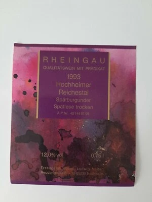 altes Weinetikett Musteretikett Etikett Label Hochheimer Reichestal 1993
