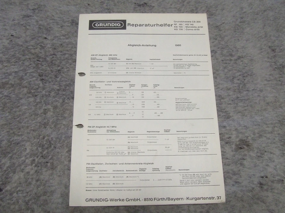 Schaltplan Service Manual für Radio Grundig RF160 KS720 KS730 Chassis CS200