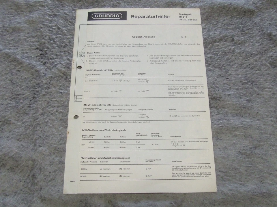 Schaltplan Service Manual für Radio Grundig Musikgerät RF210 RF 210 Benelux