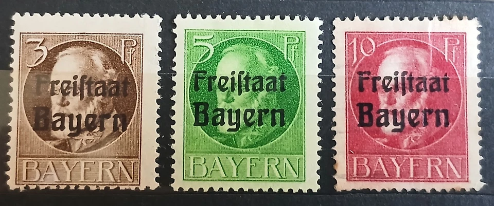 3 Briefmarken Bayern - mit Aufdruck Freistaat Bayern - postfrisch