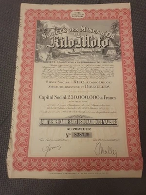 Belgisch Congo Aktie Kilo Moto 1944