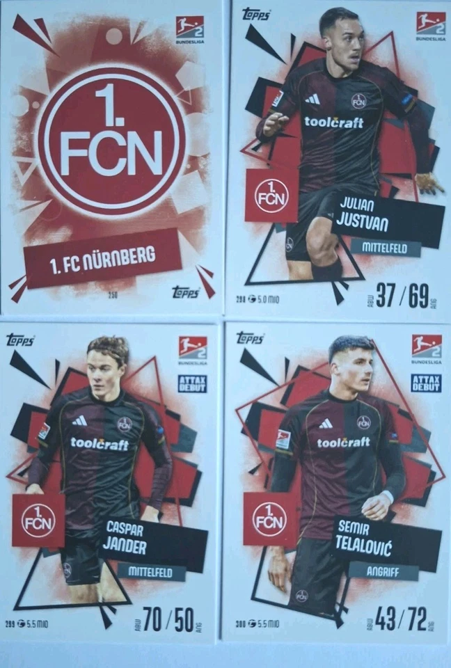 Match Attax Bundesliga 25/26 Alle vier Karten vom 1.FC Nürnberg incl. Wappen