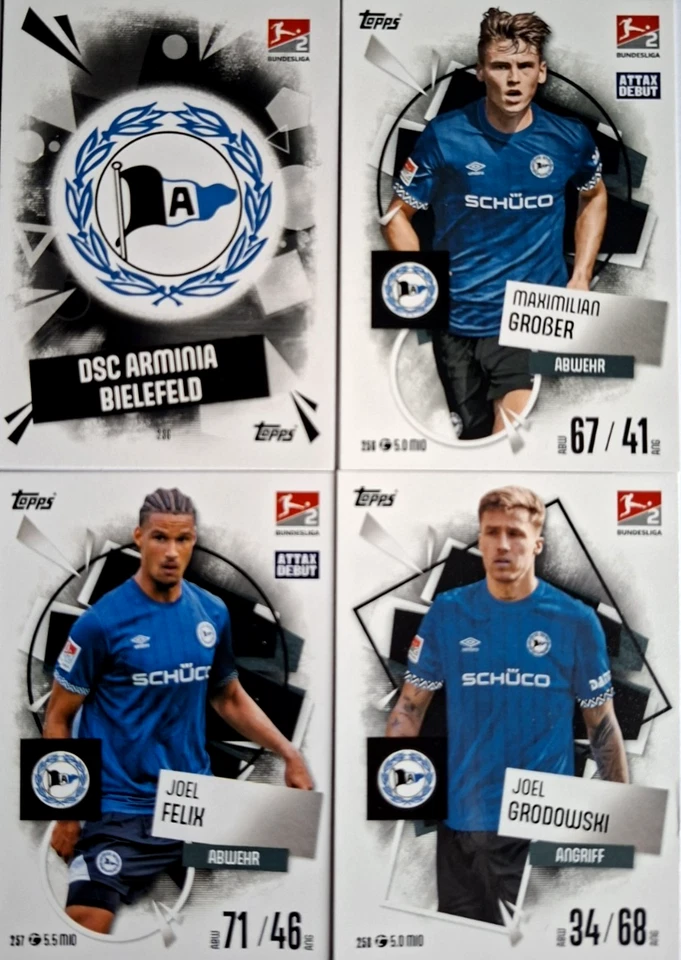Match Attax Bundesliga 25/26 Vier Karten von Arminia Bielefeld incl. Wappen
