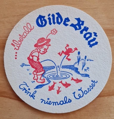* ALTER BIERDECKEL * ÜBERALL GILDE BRÄU TRINK NIEMALS WASSER HANNOVER PROST
