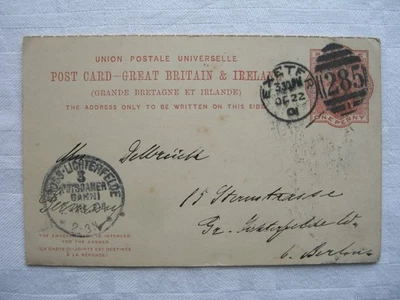 PK, 1901, England nach Gross-Lichterfelde, Berlin, Bahnpost Potsdam, Stempel (2)