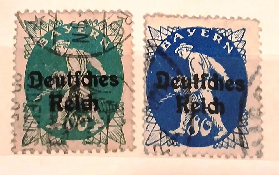 2 Briefmarken Bayern mit Aufdruck Deutsches Reich - gestempelt (1920)