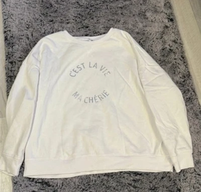 C’est La Vie Ma Chérie Sweatshirt White Graphic Pullover Size XL
