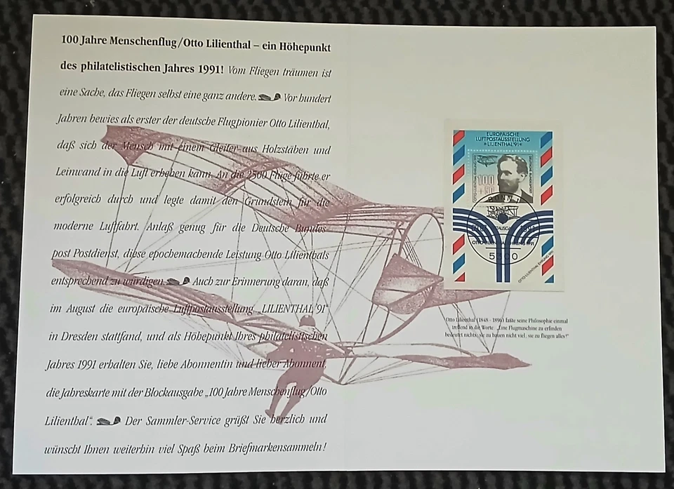 Otto Lilienthal-Ehrung 1991 - Jahreskarte des Sammler-Sevice Postdienst 1991