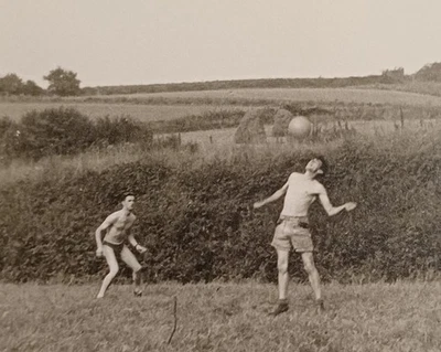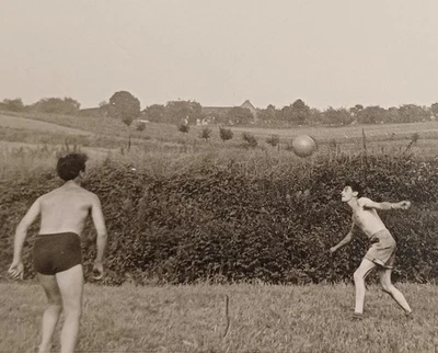 Agger 1955 zwei halbnackte junge Männer spielen Ball Jungen in kurzen Hosen Foto