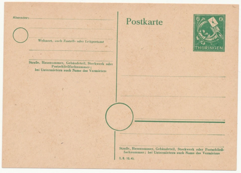 Thüringen 1945 Ganzsache - Posthorn Michel Nr. P 13
