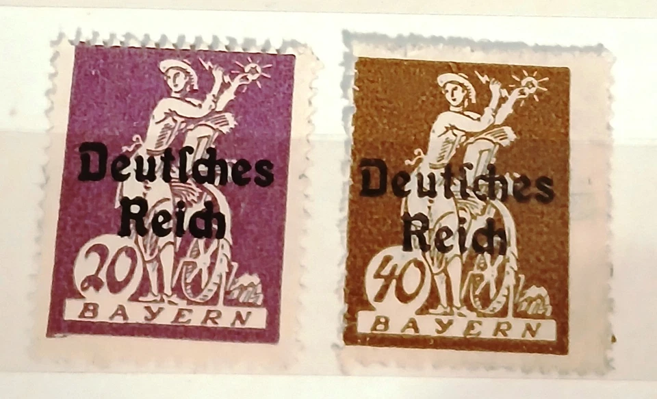 2 Briefmarken Bayern mit Aufdruck Deutsches Reich - ungestempelt (1920)