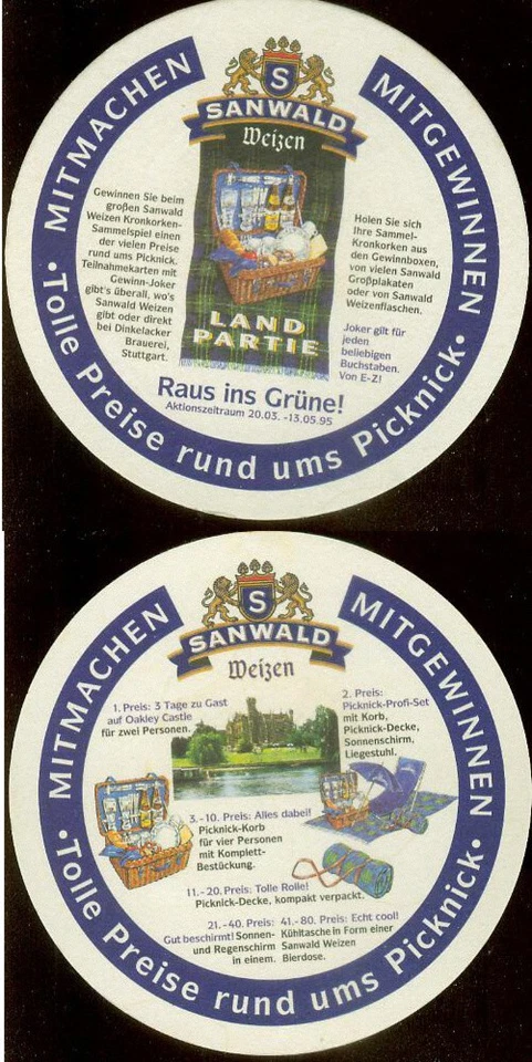 Bierdeckel Sanwald (2) Bier Bière Brauerei Stuttgart Baden-Württemberg ÜBERGRÖßE